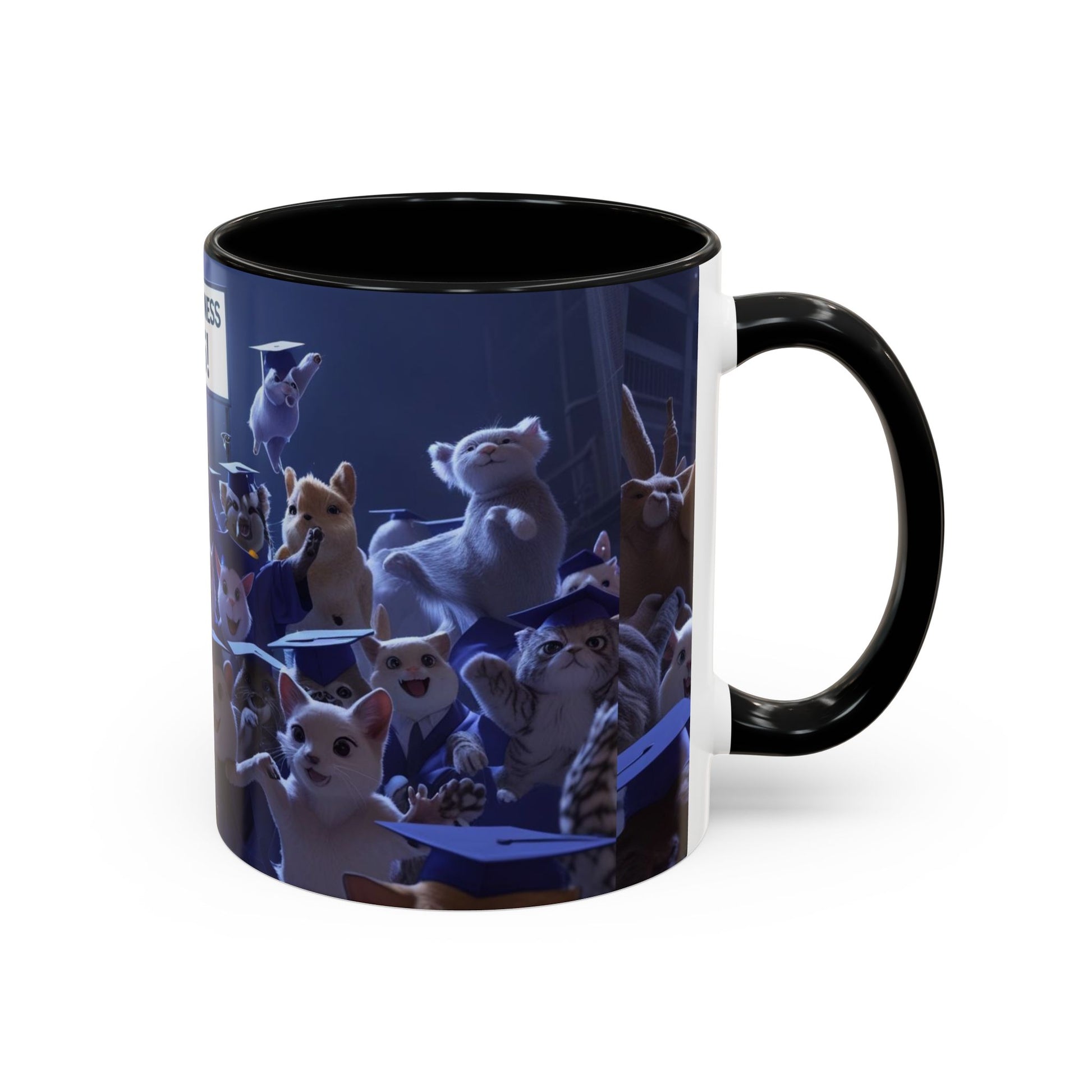 Anime Graduation Theme Accent Coffee Mug - Funny Cat & Dog Design, Perfect Gift for 2025 Grads, Inspirational Coffee Mug, Celebration Mug