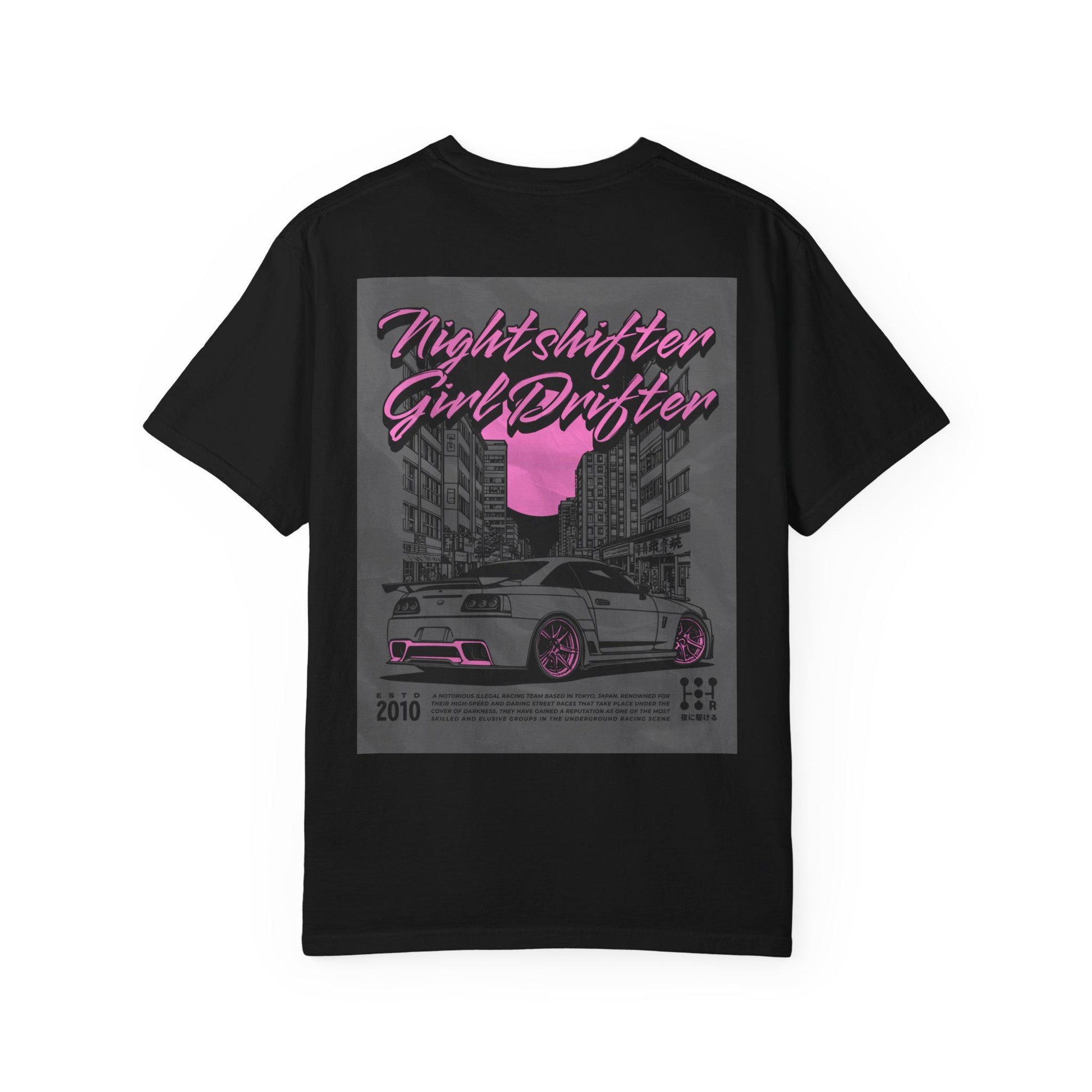 Nightshifter Girl Drifter T-shirt | Unisex Retro Car Tee | Perfect for Car Lovers, Night-Outs, Birthdays, and Gifts